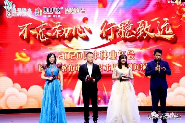 【摘要】2020年1月15日,民豐種業(yè)召開2019年終總結(jié)會、年度獎金現(xiàn)場發(fā)放會,并舉行2020年會暨烏蘭察布市民族藝術(shù)劇院慰問演出活動,總部及子公司350余人參加。董事長盧文兵對公司2019年工作及存在問題進行了總結(jié),并對2020年及未來發(fā)展作了明確規(guī)劃,同時為各農(nóng)場發(fā)放了現(xiàn)金獎勵。十幾載耕耘,不負(fù)韶華,民豐人默默蓄勢,只為明日薄發(fā)!