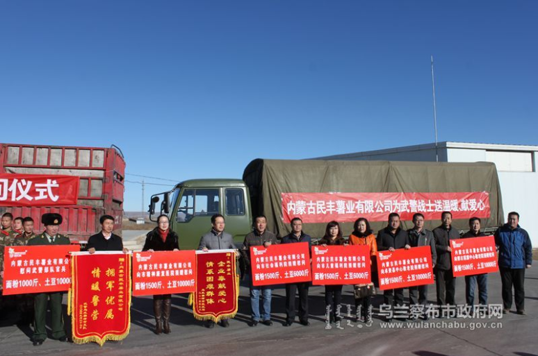 市民政局代表受贈單位向民豐薯業表示感謝并指出,民豐薯業在發展的同時,不忘回報社會,特別是一次性較大規模的對我市困難群眾和部隊官兵進行捐贈慰問,在我市還屬首次,這一舉動值得學習,同時在此呼吁更多的企業參與到奉獻愛心和擁軍優屬活動當中,為烏蘭察布市構建和諧穩定社會環境發揮積極作用。