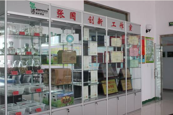 創新工作室建立在馬鈴薯研究院,以自治區勞動模范總經理張國命名。工作室設立了成果展示柜,集中展示了工作室成立以來總經理張國和我公司在馬鈴薯領域科研發展領域方面取得的創新成果和獲得的榮譽。工作室組織機構、工作計劃、目標、內容、簡介、科研課題項目管理制度、管理辦法全部上墻,分別掛牌成立了實驗準備室、病理鑒定室、理化分析室、育種資源室和脫毒培養室。